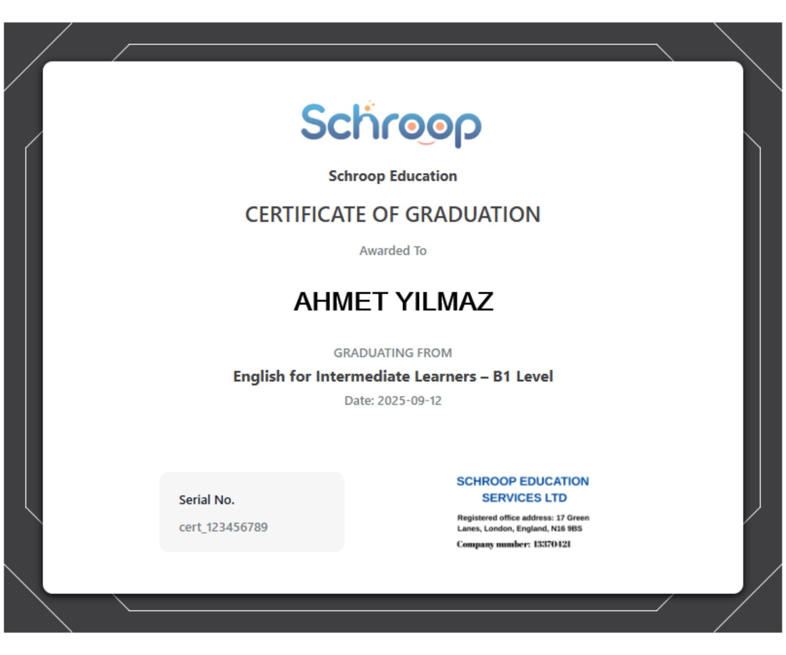 Participants who successfully complete the program will be entitled to receive a Schroop-approved digital certificate of achievement.